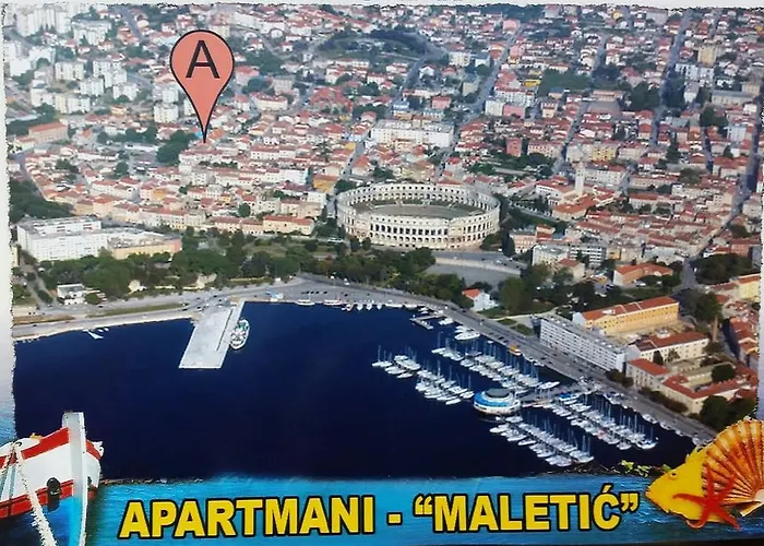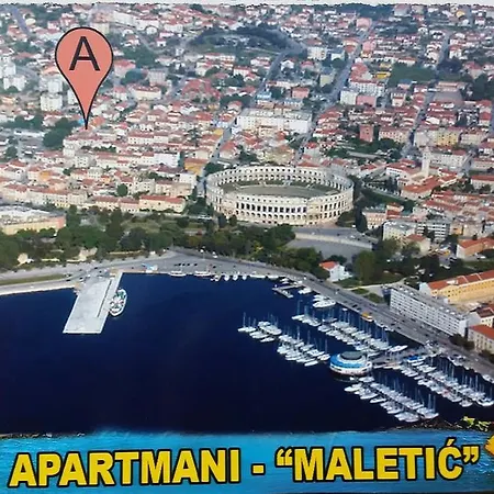 Az Augustus templomától egy 1 km-es távolságra található Apartments Maletic Póla nyilvános parkolóval várja az autóval érkezőket. Az apartmantól nem messze számos turisztikai látványosság van, például a Herkules-kapu.